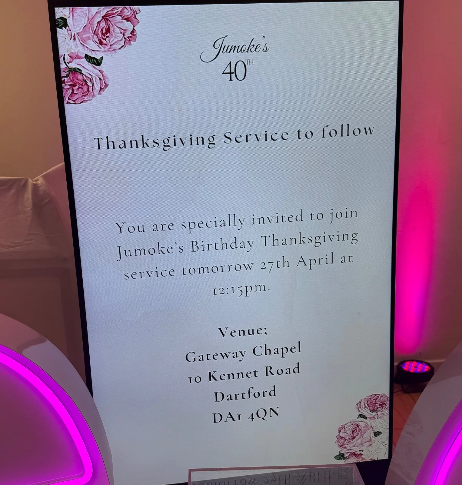 In our eco-conscious world, a more sustainable and flexible solution is needed. Introducing the Event Digital Communicator, a versatile, lightweight, freestanding digital screen that revolutionises event signage. This multi-purpose frame enhances guest experiences with dynamic, easily updatable displays for any event.